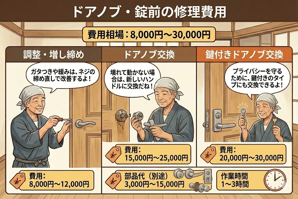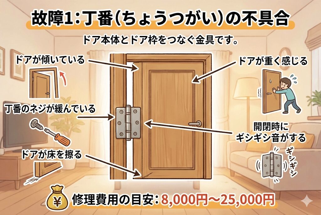 「室内ドアが壊れたけど、どの業者に頼めばいいの?」「丁番が外れた、ドアノブが壊れた…修理費用はいくらかかる?」