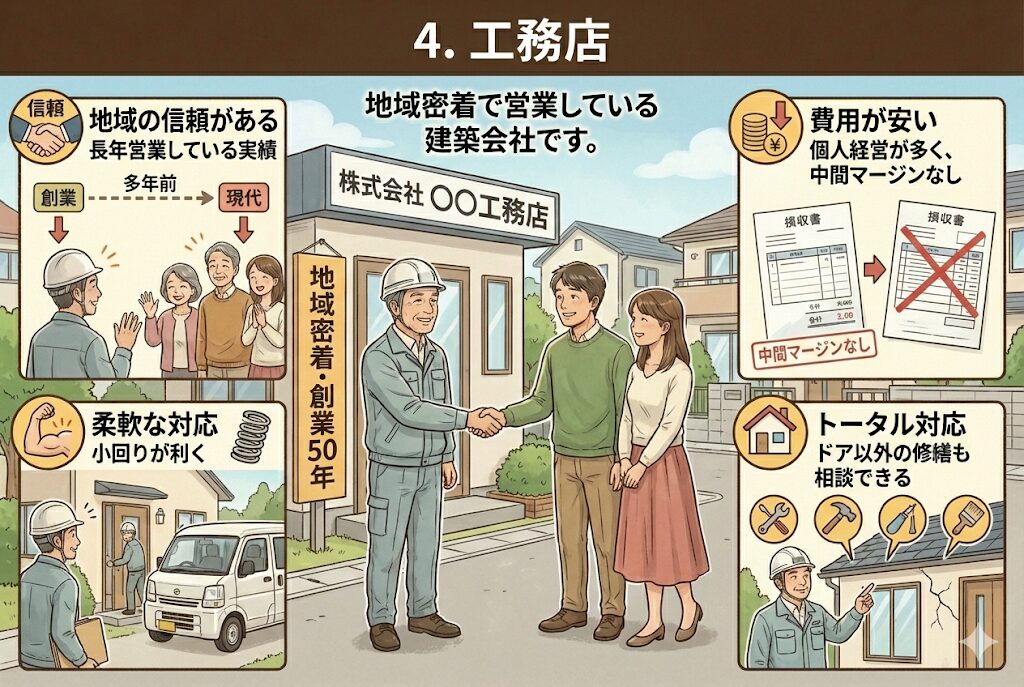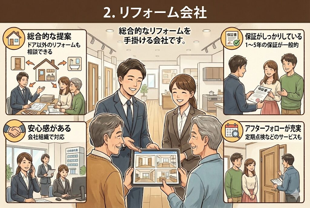 - 総合的な提案:ドア以外のリフォームも相談できる