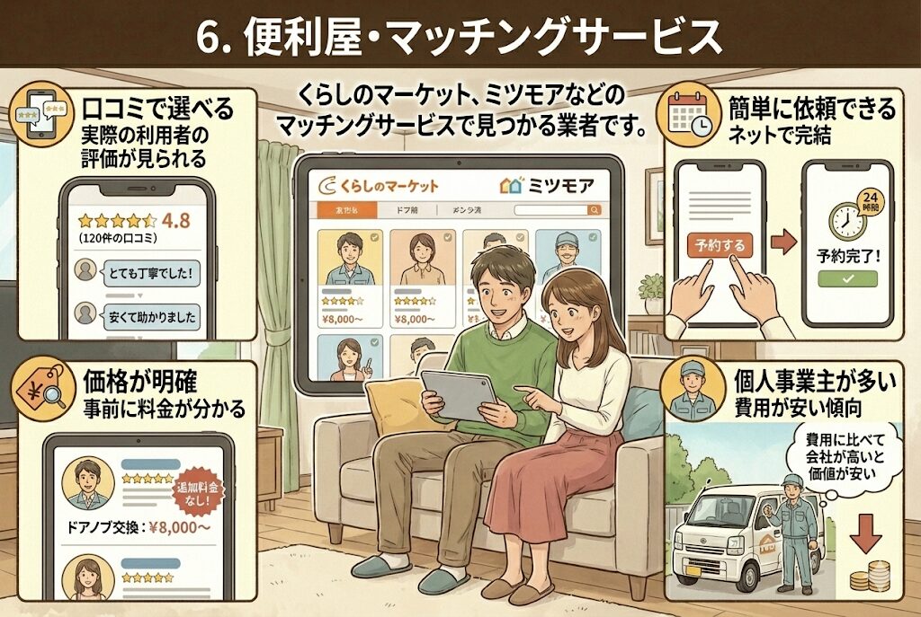 - 便利屋・マッチングサービス:口コミで選べる、価格明確