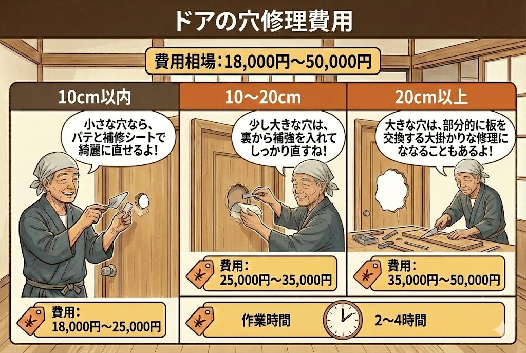 修理費用の目安:18,000円〜50,000円(穴のサイズによる)