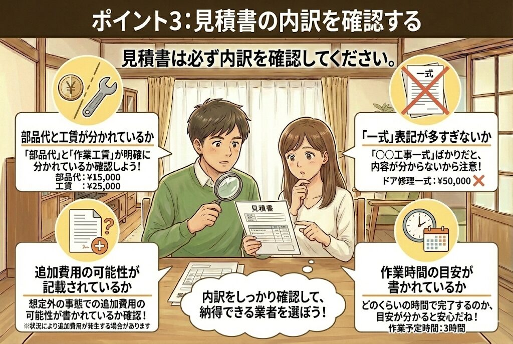 ホームセンターは中間マージン(10〜20%)が発生するため、総額では建具屋より高くなることがあります。