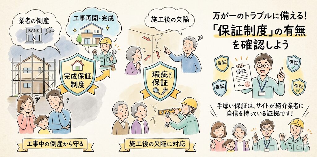 万が一のトラブルに備えた「保証制度」の有無も重要です。
