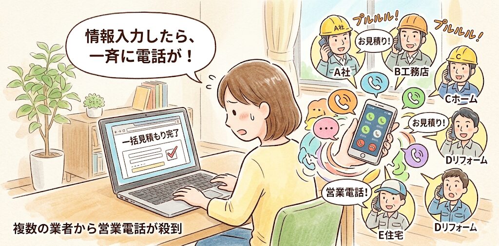 一括見積もり型のサイトを利用すると、情報を入力した直後に複数の業者から一斉に営業電話がかかってくることがあります。