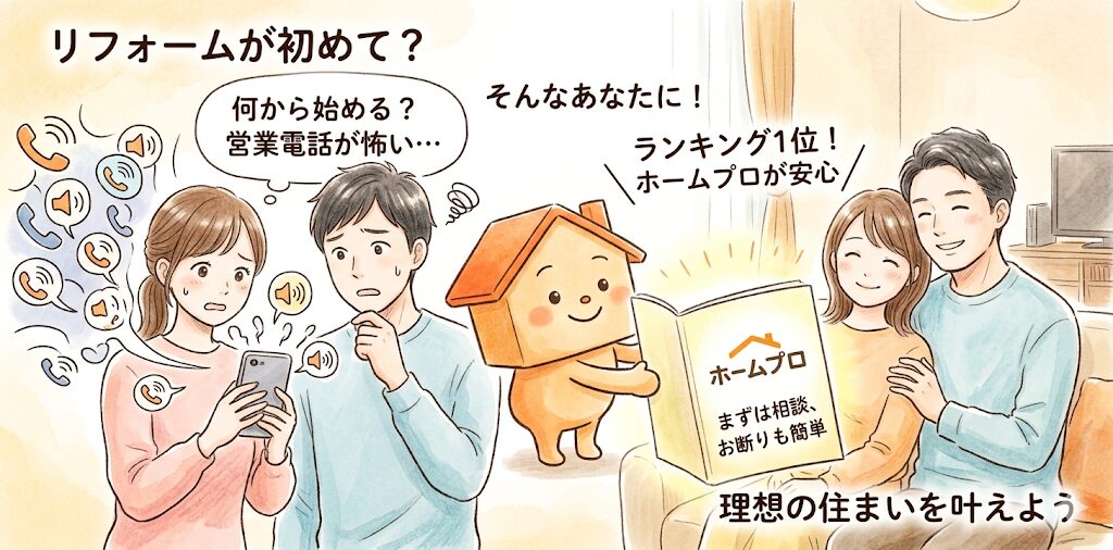 リフォームが初めてで、「何から始めればいいかわからない」「いきなり営業電話が来るのは怖い」という方には、当サイト堂々第1位の「ホームプロ」が圧倒的におすすめです。
