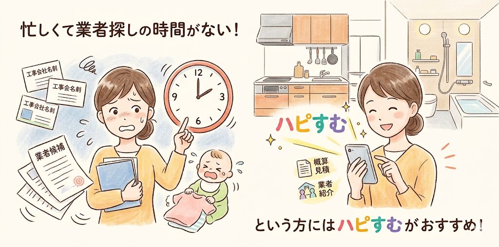 「忙しくて業者探しの時間がない」「とにかく早く大まかな見積もりが知りたい」という方には「ハピすむ」がおすすめです。