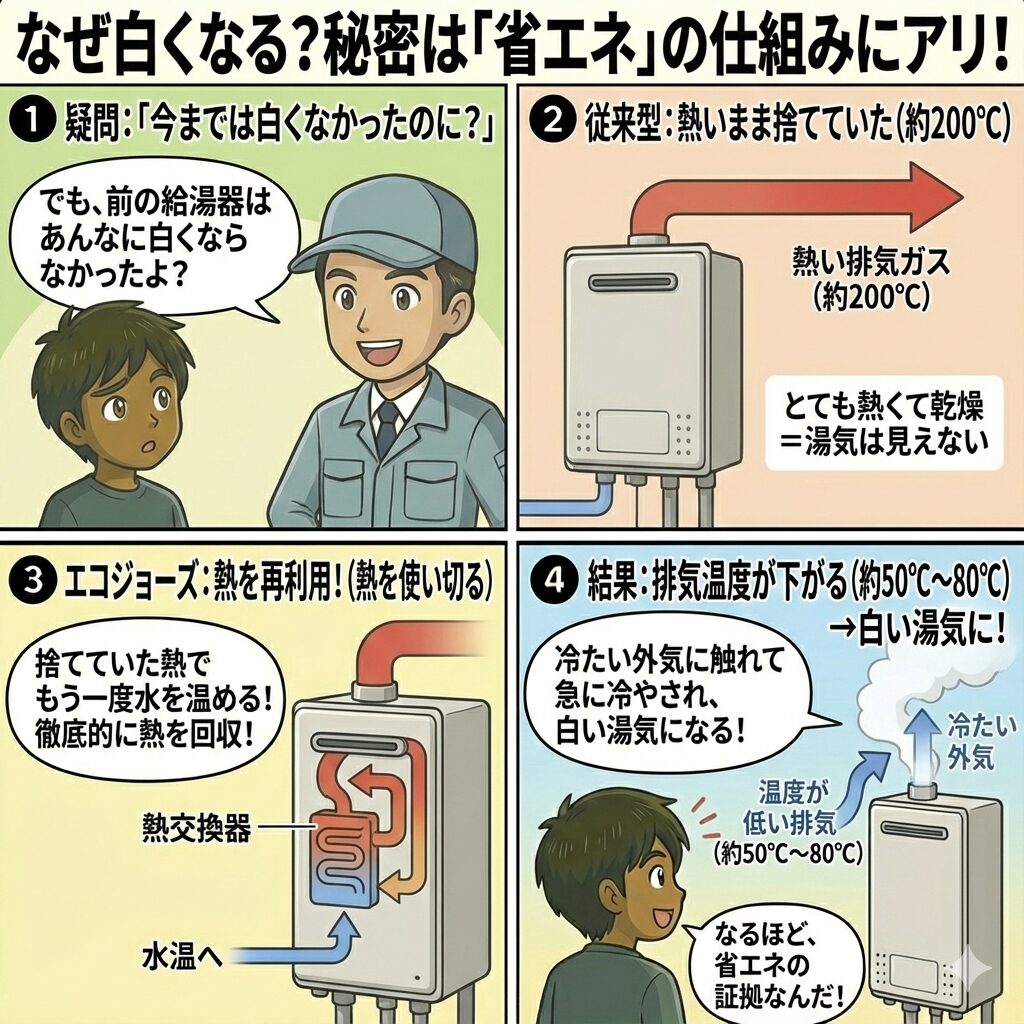 2. なぜエコジョーズだけ「湯気」が目立つの?