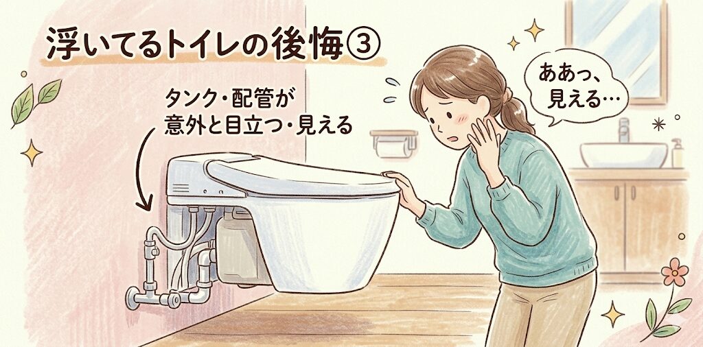 浮いてるトイレの後悔③「タンクや配管が意外と目立つ・見える」