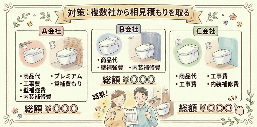 対策:工事費込みの総額で複数社から相見積もりを取る