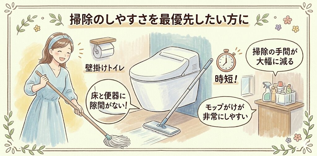 掃除のしやすさを最優先したい方には壁掛けトイレが向いています。