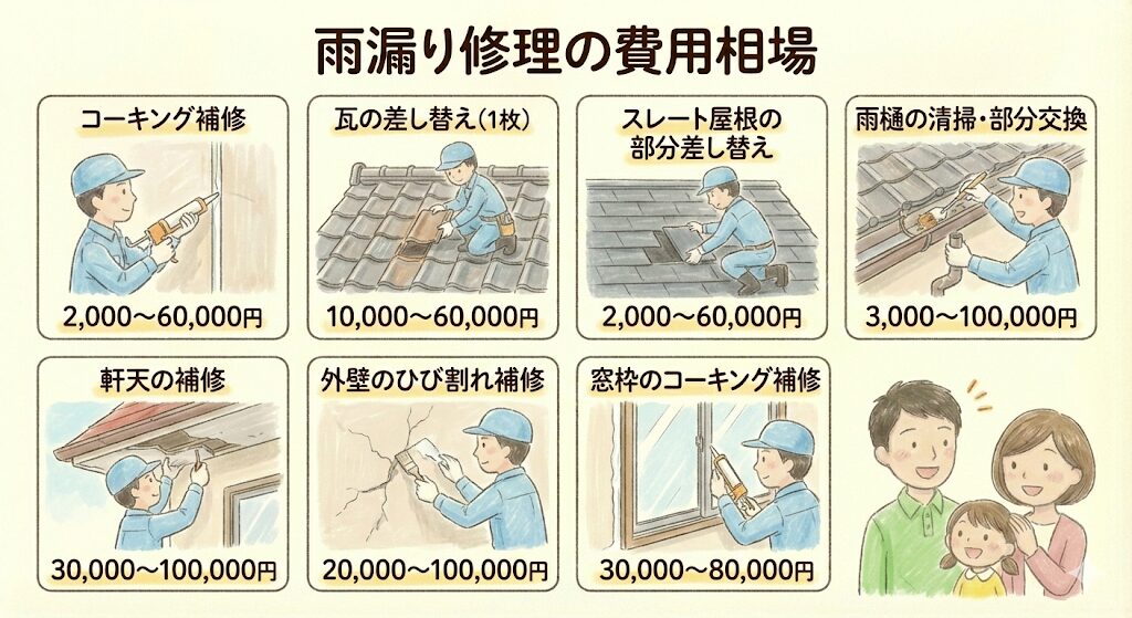 被害が限定的で、部分的な修理で済む場合の費用相場です。