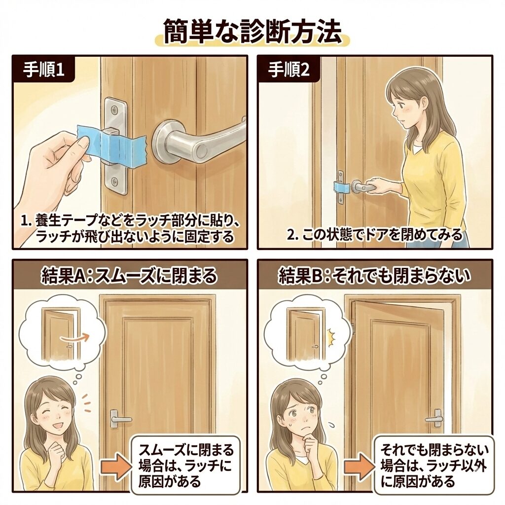 ドアが閉まらない原因がラッチにあるのか、それとも他の部分にあるのかを特定することが重要です。