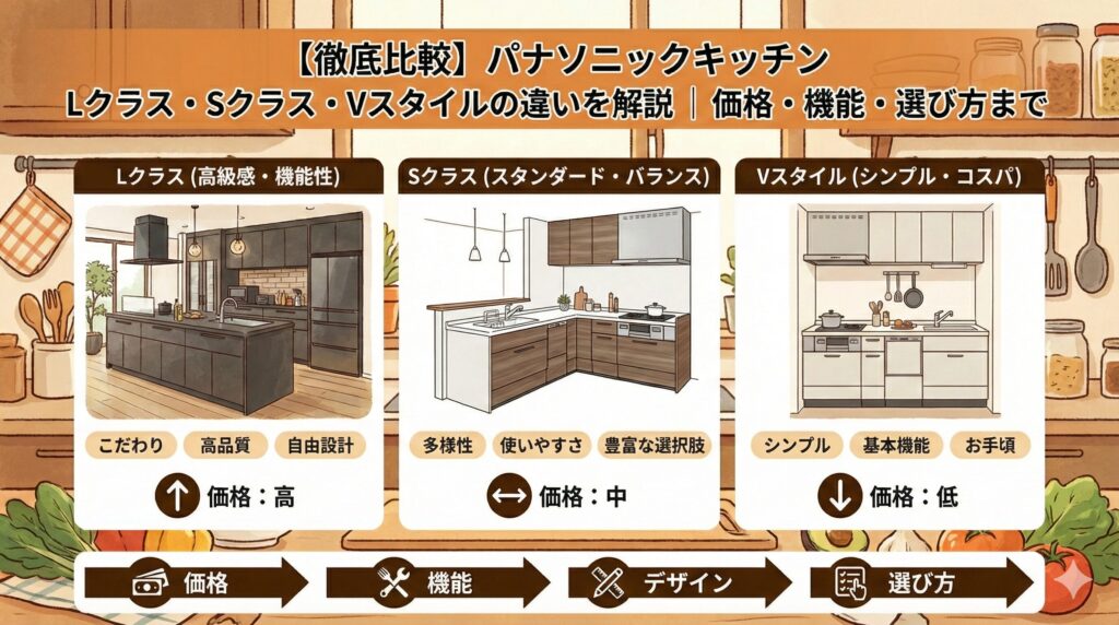 【徹底比較】パナソニックキッチン Lクラス・Sクラス・Vスタイルの違いを解説|価格・機能・選び方まで