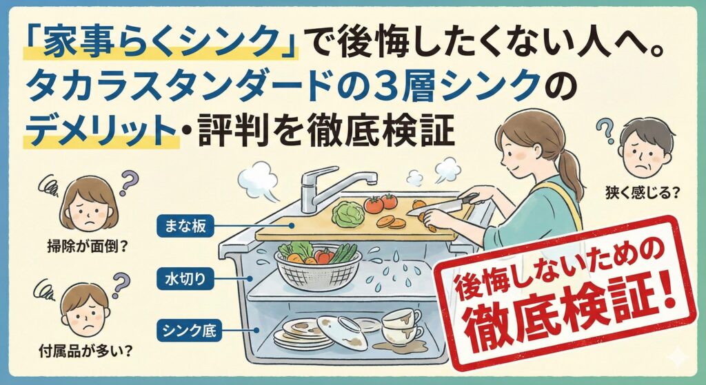 「家事らくシンク」で後悔したくない人へ。タカラスタンダードの3層シンクのデメリット・評判を徹底検証