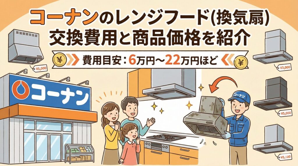 コーナンのレンジフード(換気扇)交換費用と商品価格を紹介