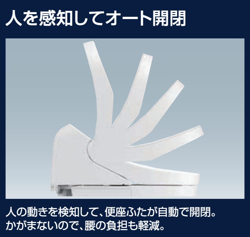 | 特徴 | ・自動開閉 ・自動洗浄 ・きれい除菌水 ・オートパワー脱臭 など |